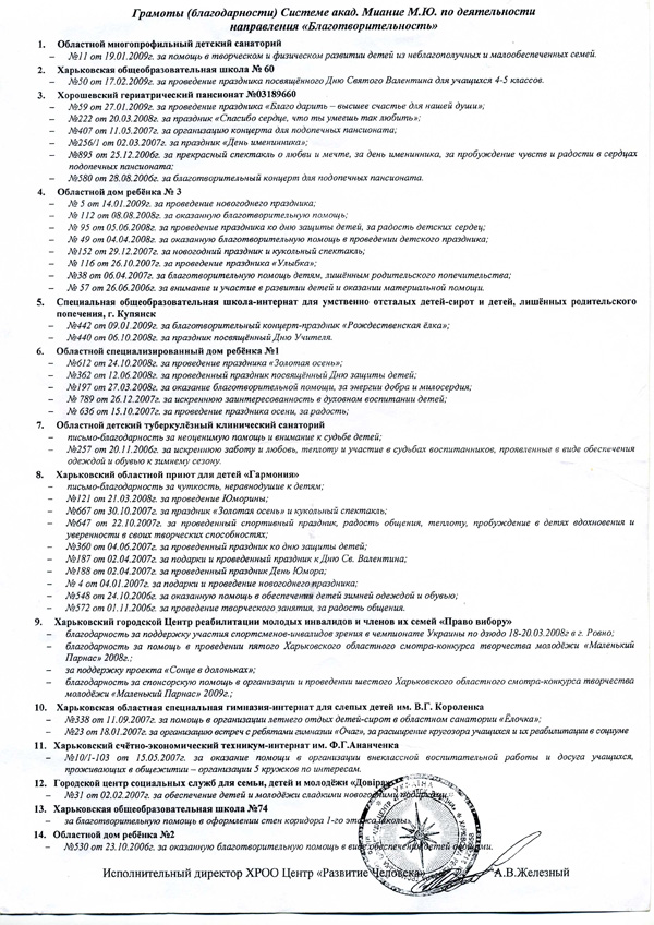 Благодарности за 2006-2009 год